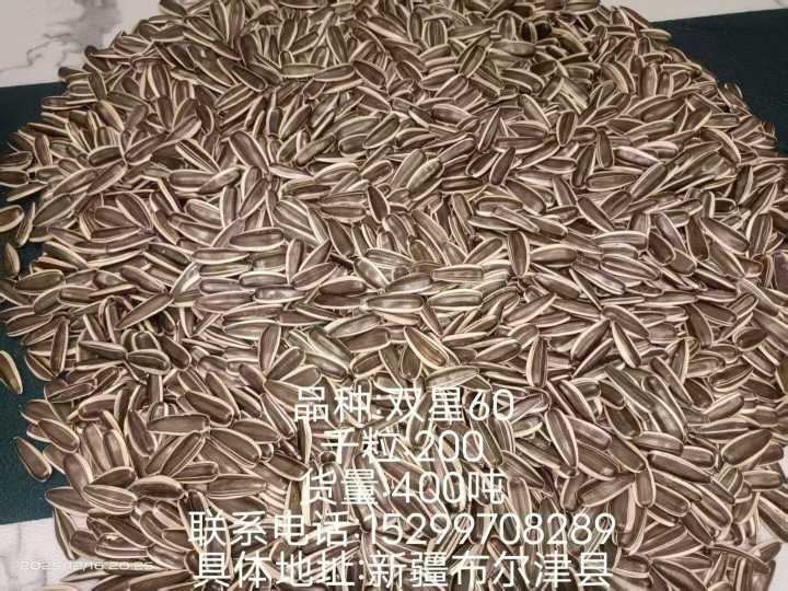 出售新疆福海县双星6号葵花籽,千粒重205色选货,有200吨,有需要的老板联...